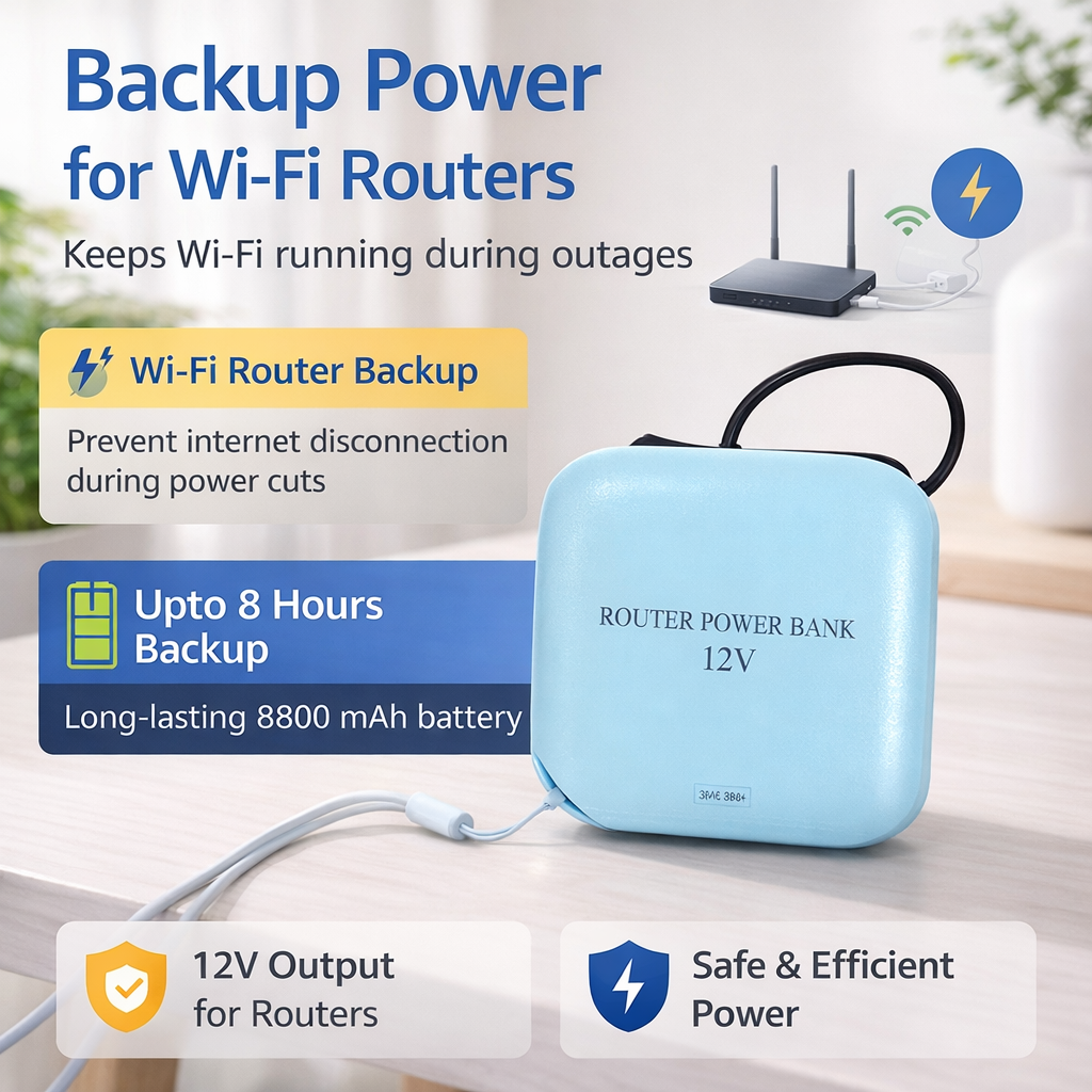 🔋 Uninterrupted Voltage Output (12V) – Works seamlessly with your Wi-Fi router